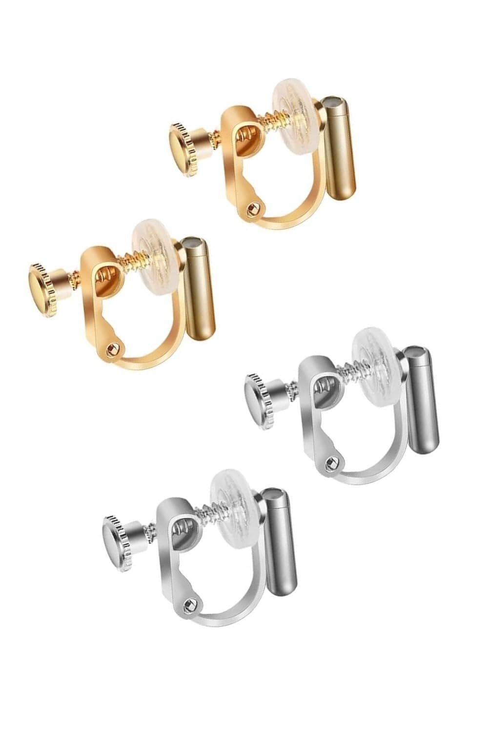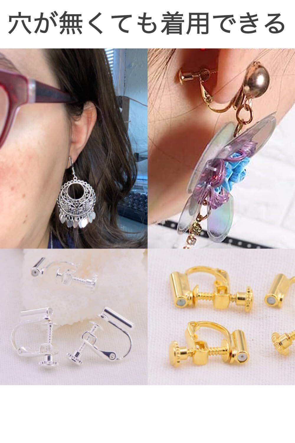 ピアスをイヤリングに変換するイヤリングコンバーター 縦型 ゴールドとシルバーの2色セット(2組4個) コンバーターを使えばイヤリングとして着用できます。 横型に比べて、縦型は見た目の位置が高くなる