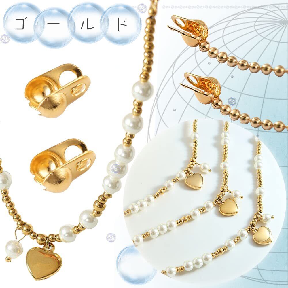 ボールチップ カシメ玉 400個セット 304 ステンレス エンドパーツ 留め具 基礎金具 ビーズ ボールチップ つぶし玉 アクセサリーパーツ 手芸用品 手作りアクセサリー DIY用 ブレスレット ネックレス用 ゴールド/シルバー各200個 (2.4mm側面開口部)