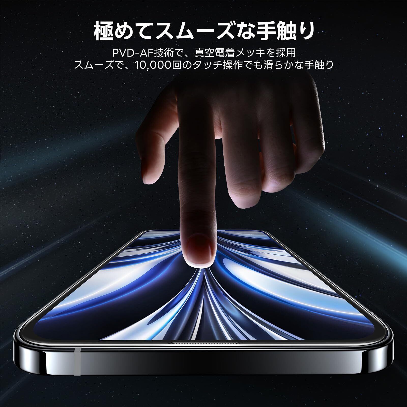 【究極のスムーズな感触・指紋防止】ハスの葉を模倣したAFテクノロジーや日本信越製防汚コーティング剤を使用し、耐水性、耐油性、耐指紋性を持つ防汚ナノコーティングが形成されています。指紋が気にならず、画面を綺麗に保てます。極限摩擦を10,000回繰り返しても、0.3mmの薄さでゲームや文字入力がスムーズに行えます。1億3700万人以上のユーザーから絶賛されており、非常に優れた使用体験を提供します。