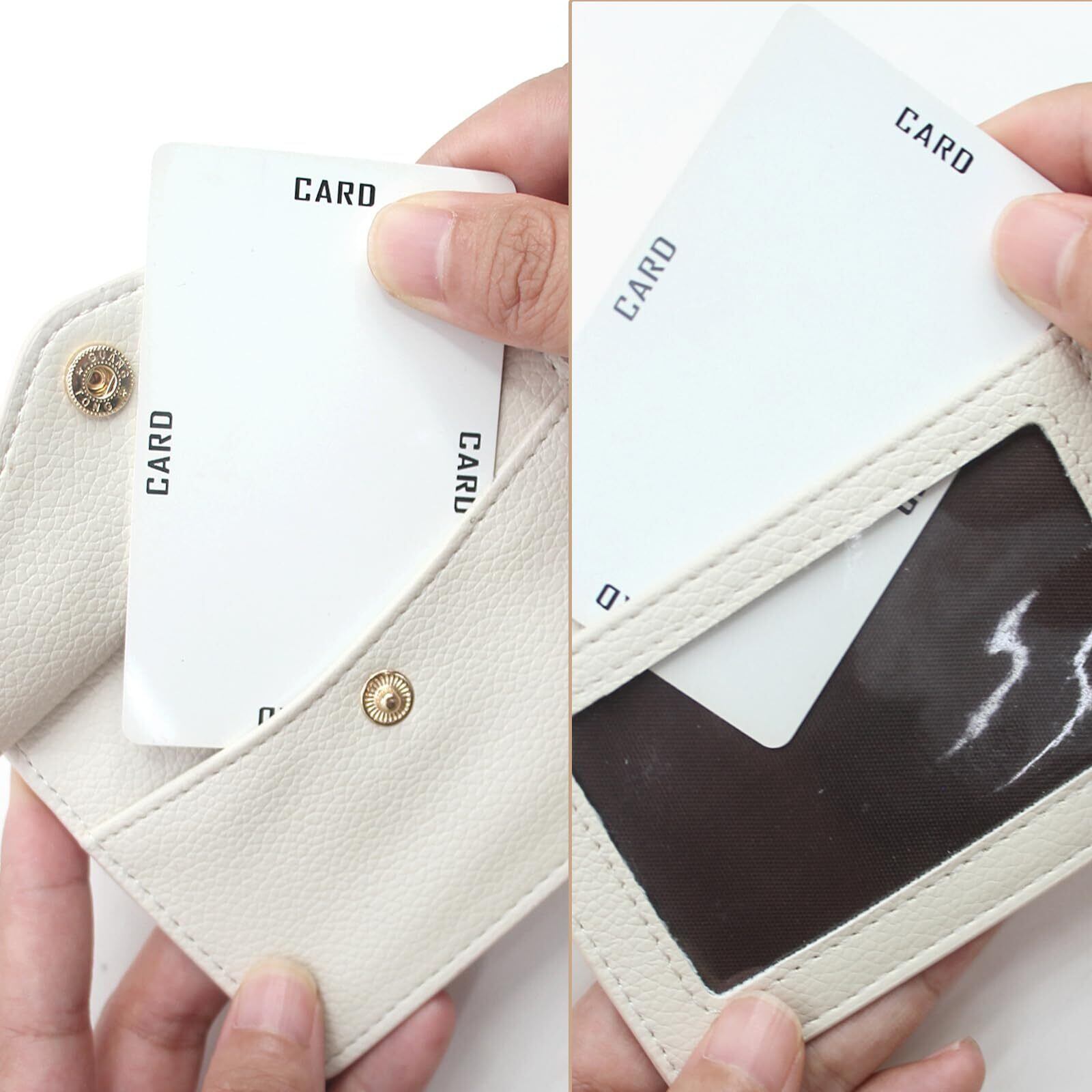 【封筒型デザイン】 落ち着いた色合いを採用しており、ビジネスシーンや学生向けにも適しています。全体で3色のラインナップが展開されており、お好みのIDカードホルダーを選択することができます。特に、裏面の封筒型ポケットにはスナップボタンが付いており、カードを取り出す際にもより安全で、カードを落とす心配がありません。