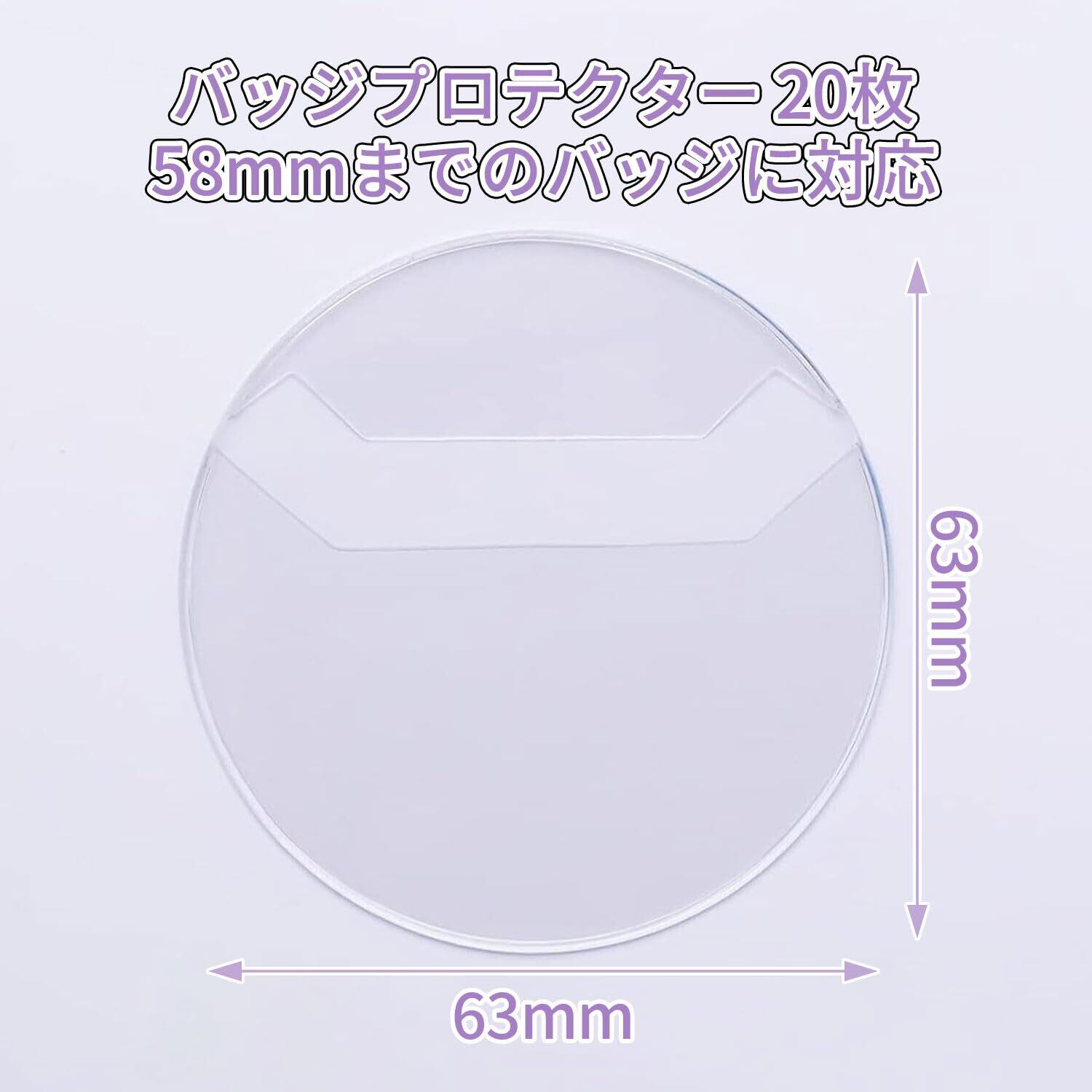 【パッケージ内容】20個入り、40個入り。サイズ:丸型63mm(57mmバッジ用)、材質:PVC。