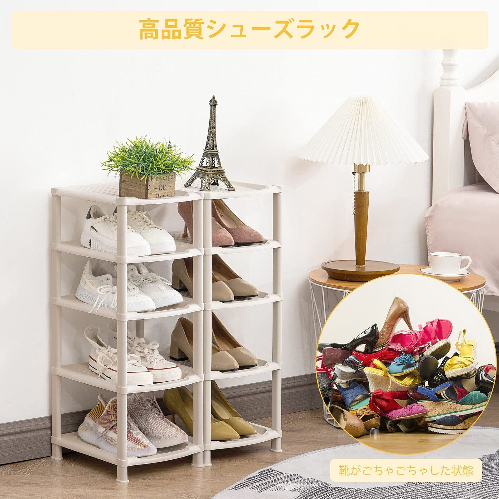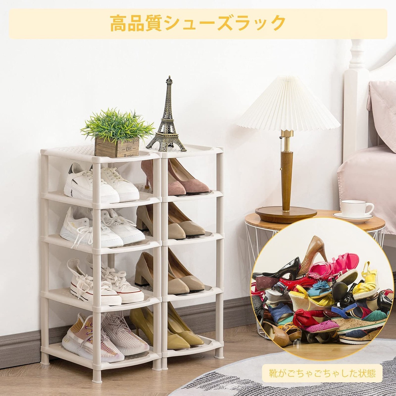 YOUDENOVA シューズラック スリム 靴収納 靴棚 省スペース 大容量 組み立て式 靴置き タワー コンパクト ポリプロピレン製 斜め置き 滑り止め トレー 狭い 玄関 廊下 クローゼット アパート用 靴箱 下駄箱 靴入れ(ベージュ・10段・26x33x141cm)