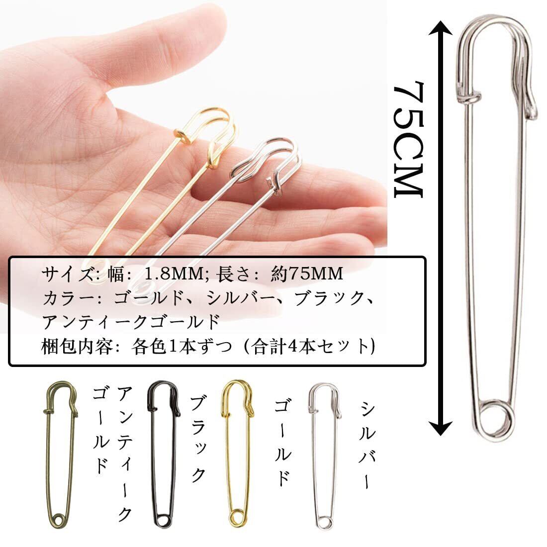 【使いやすい】約75mm大きいサイズなので、使いやすいです。裁縫、DIY, スカーフ、マフラー、ストール、衣装の固定など様ざまなシーンに使えます。おしゃれな4色で、服のスタイルや色などによって選択して使えます。とてもよいです。