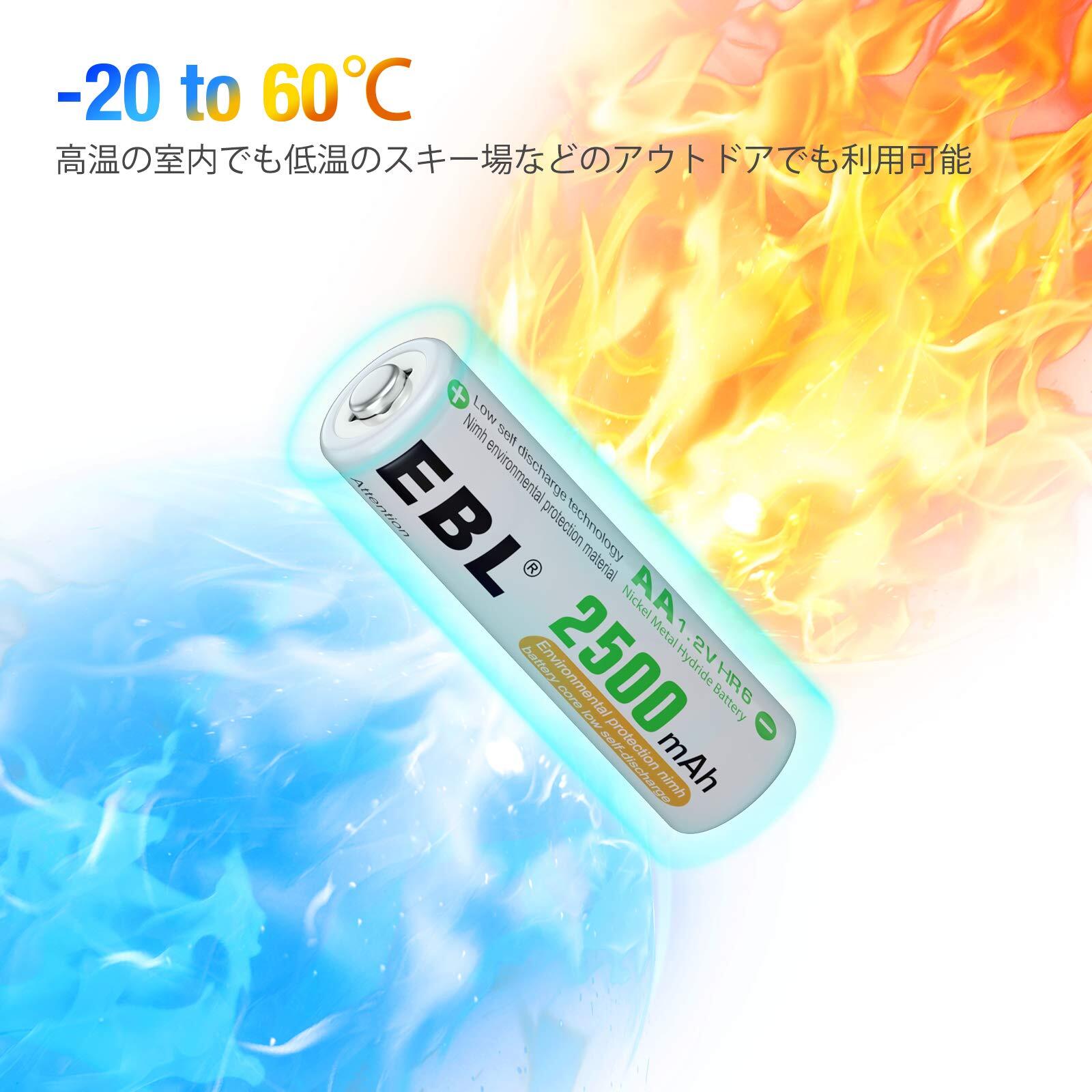 EBL 単3電池 充電式 8本セット 大容量2500mAh長持ち ニッケル水素充 単3電池 約1200回繰り返し充電可能 単三電池 充電式 じゅうでんち単3