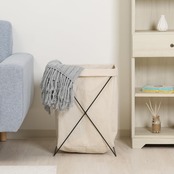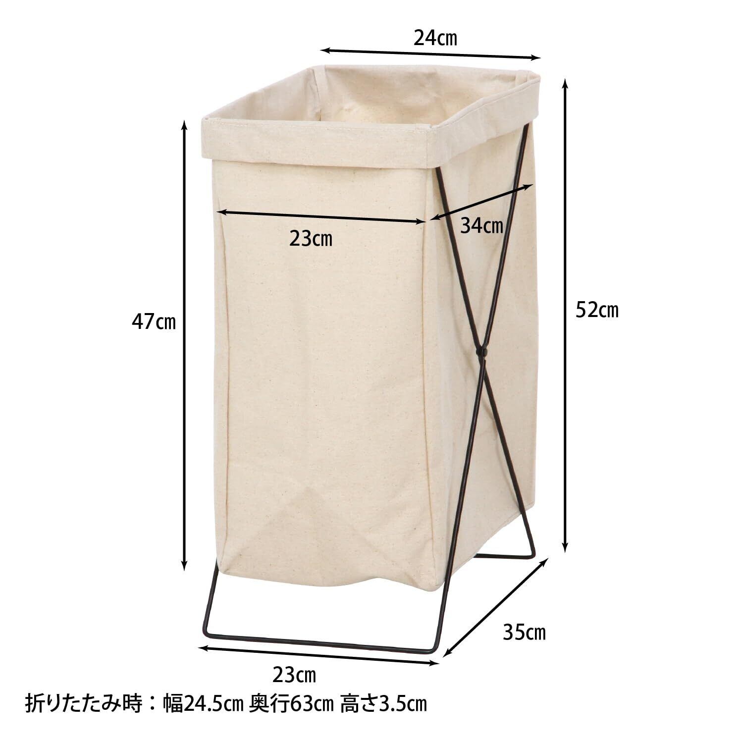 不二貿易(Fujiboeki) ランドリーバスケット スリム 幅24×奥行35×高さ52cm アイボリー 洗濯カゴ 折りたたみ ゴミ箱 キャンプ用 おもちゃ収納 内側撥水加工 31509