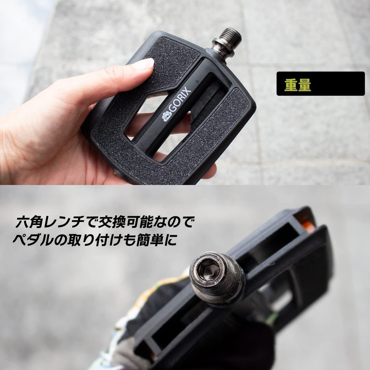 GORIX(ゴリックス) 自転車ペダル ノンスリック フラットペダル 高いグリップ力 表面滑り止め加工ブラック (GX-F558) [ リフレクター 反射板付き ナイロン・靴に優しい表面グリップ・滑り止め・幅広ワイド ] ロードバイク クロスバイク MTB他自転車対応 通勤通学
