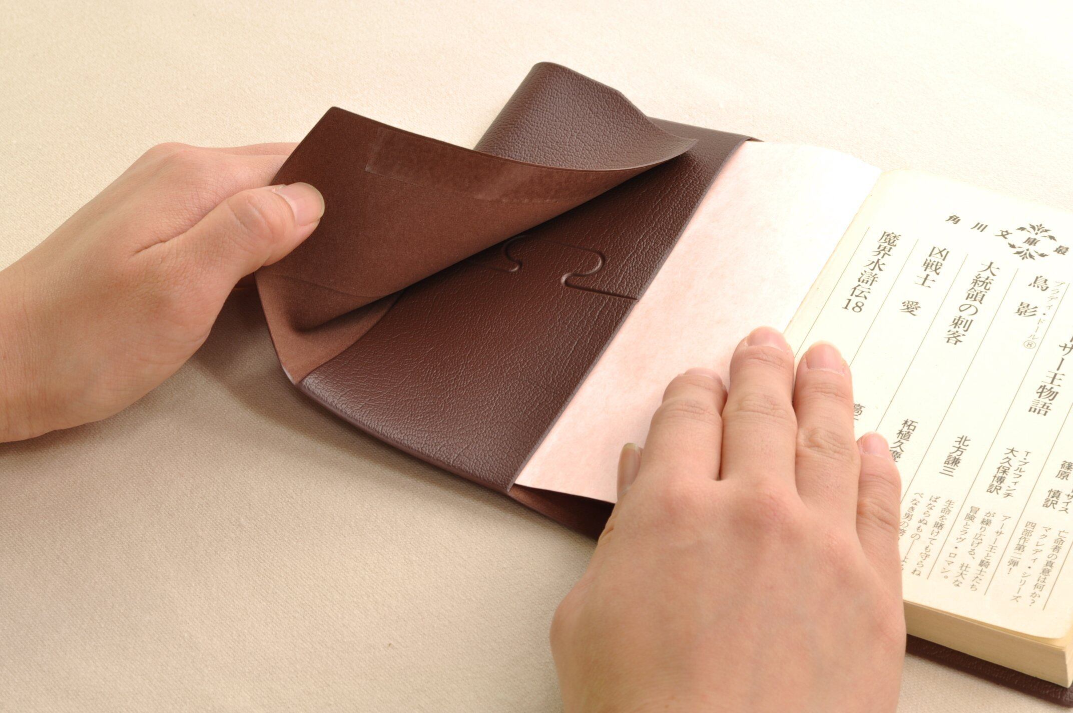 厚表紙の本にもカバー帯部分のジグソーを外すことで無理なくかぶせることができる。