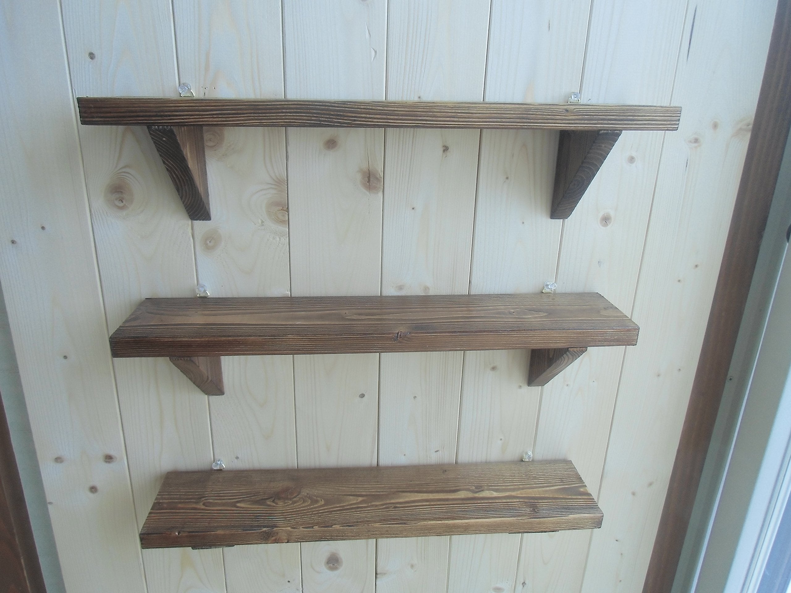 ICIヘルスケア 壁を傷つけない 落下させないウォールシェルフ 3点セット ロングピン付き(針長25mm)賃貸にお薦め 飾り棚 壁掛け オープンシェルフ ラック 天然木 ハンドメイド 壁 棚 DIY 石膏ボード おしゃれ アンティーク (ウォールナット)