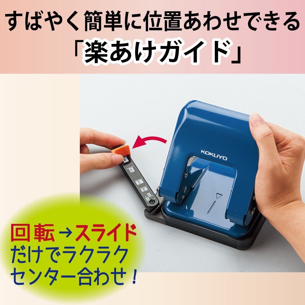 コクヨ(KOKUYO) 穴あけパンチ 2穴 ラクアケ 用紙サイズガイド付 25枚 青 PN-G25B