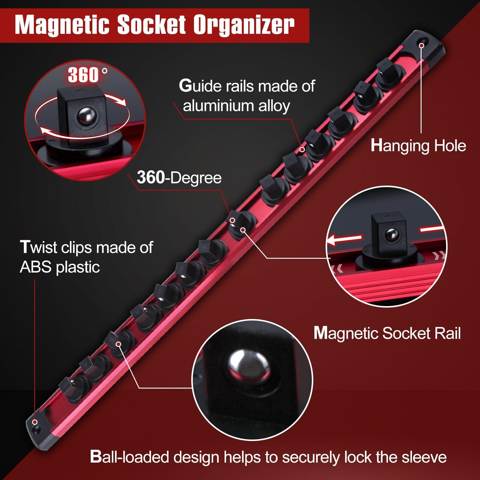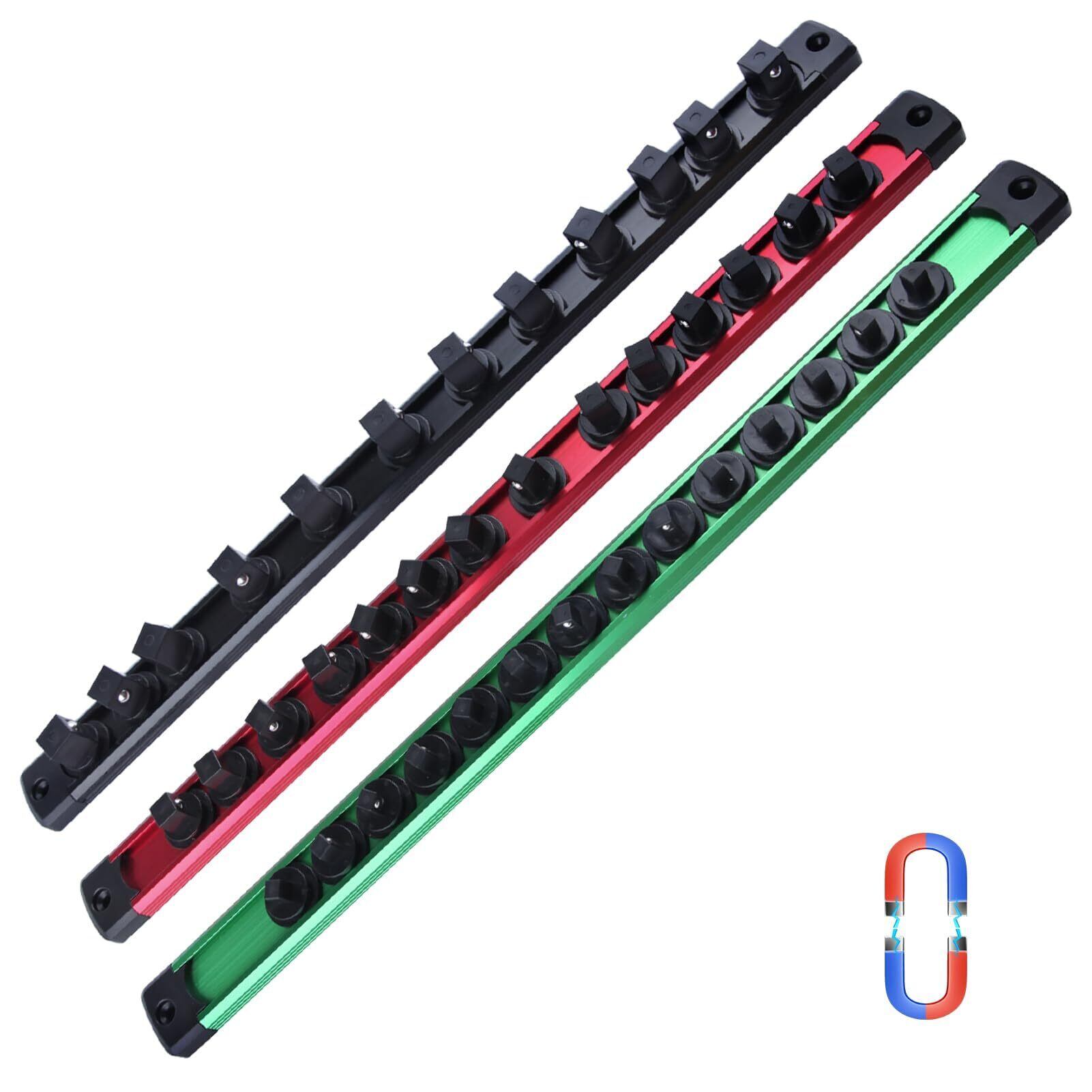 SPEEDWOX 3本セット マグネットソケットホルダー マグネット式ソケットオーガナイザー アルミ合金ソケットレール アルミニウム合金ソケットレール 磁気ソケットオーガナイザー ソケットラックキット アルミソケットホルダー ロッキングソケットマグネットホルダー ツイストロックソケットホルダー 40個収納 差込角1/2"(12.7mm) 3/8"(9.5mm) 1/4"(6.3mm)