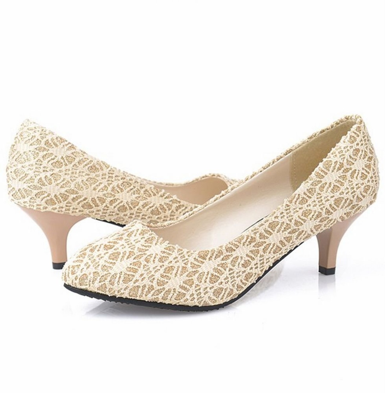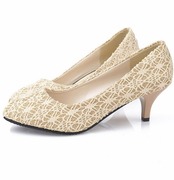 [ビューメンス] 総レース ラメ入り ローヒール パンプス フェミニン