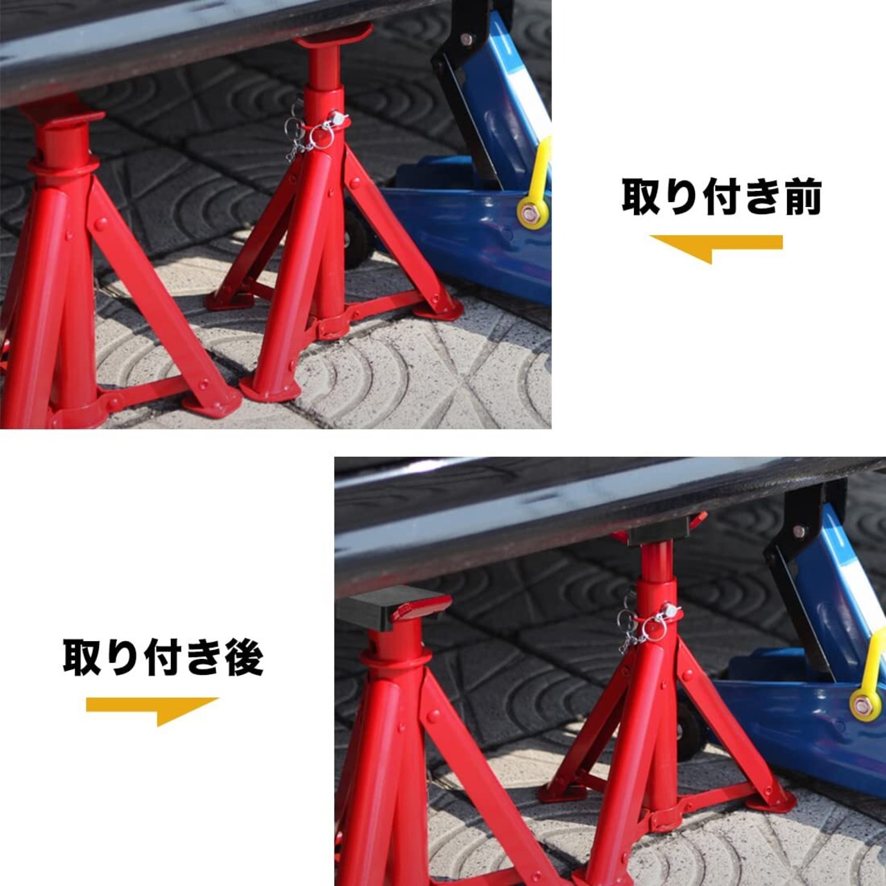 【取り付け簡単】:取り付けはさし替えるだけでOK!用途に合わせて簡単に替えることができます。被せるだけの簡単装着で、ジャッキスタンドを乗せるだけで、お手持ちの車ジャッキが幅広くご使用できます。