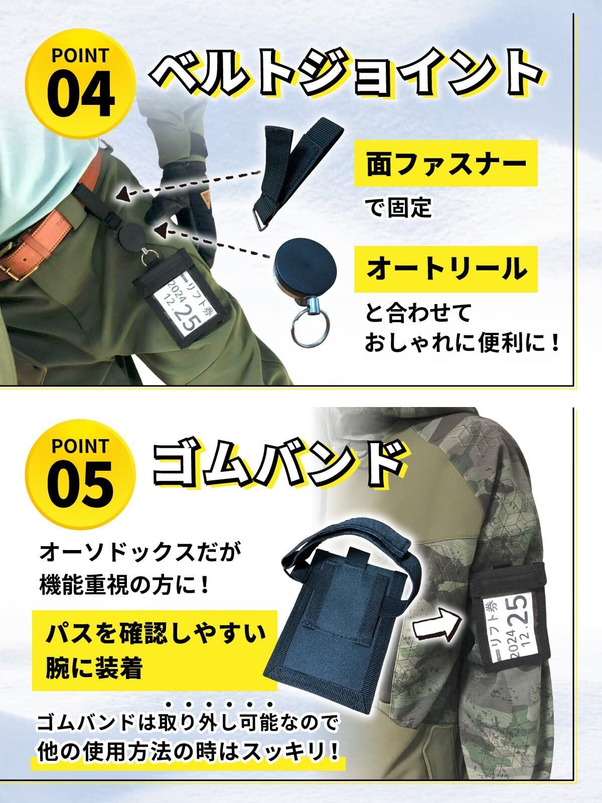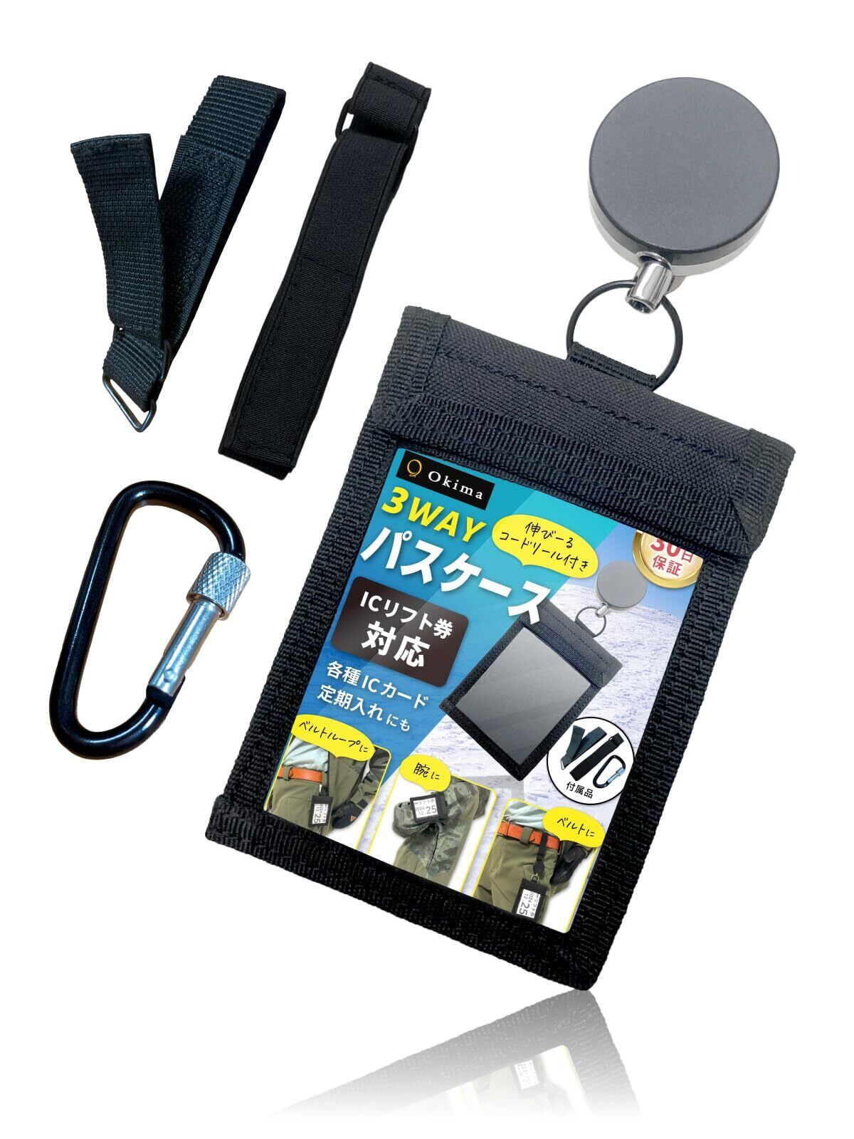 Okima リフト券ホルダー パスケース スノボ スキー 【3WAY】 チケットホルダー リフト券スノーボード IC対応 定期 リール付き (ブラック)