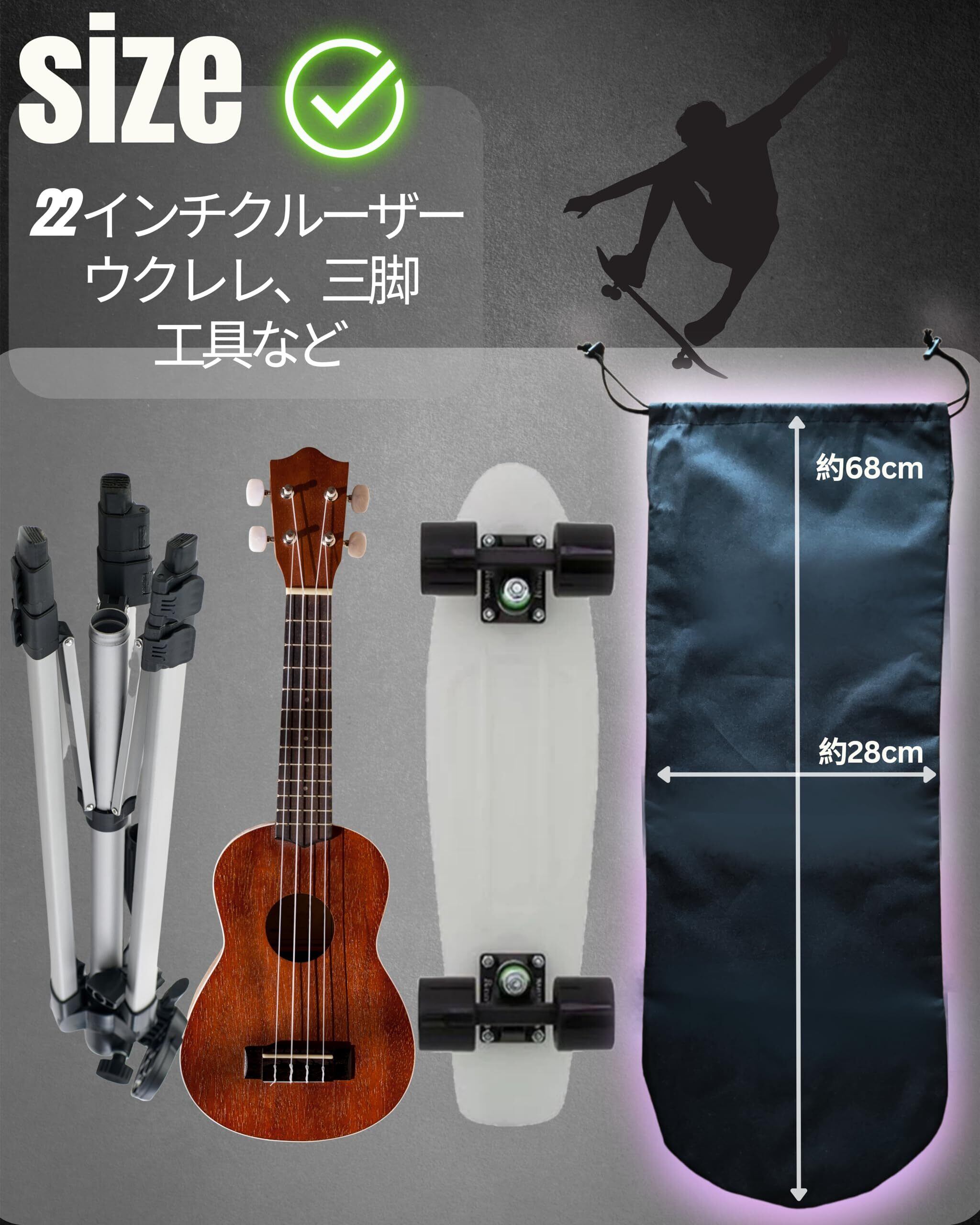 サイズ目安: 22インチ クルーザー ,ウクレレ、三脚など(長さ約60㎝以内のもの)