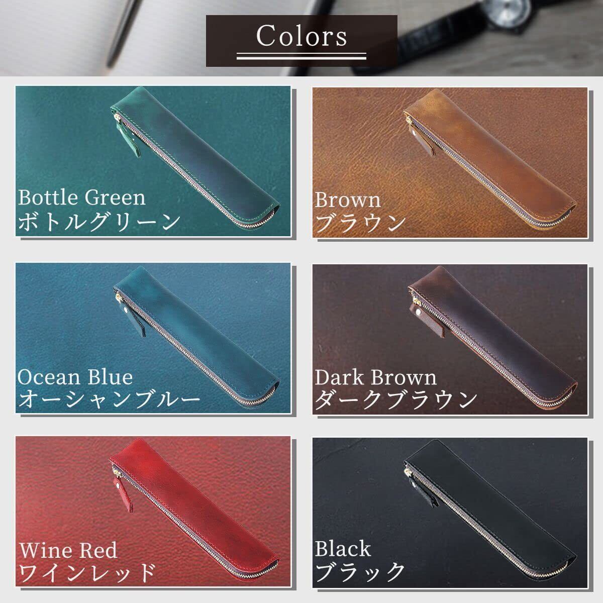 本革を使用したスリムなペンケース<BR><BR>シンプルなデザインで、内側は本革の素材感がそのまま活かされています<BR><BR>必要最小限でコンパクトなのでバッグの収納力を圧迫しません<BR><BR>長さ20cm・横4.5cm・マチ1.5cm・重量50g・L字ファスナー採用<BR><BR>ブラック・ブラウン・ダークブラウン・ボトルグリーン・オーシャンブルー・ワインレッドの6バリエーション