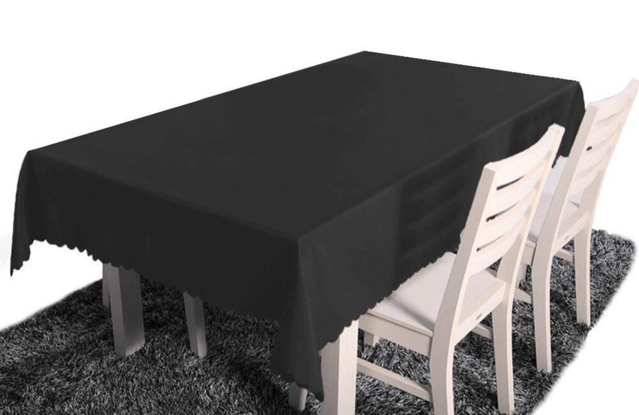 HappyHome テーブルクロス 無地 135x180cm シンプルデザイン 長方形 ポリエステル 洗える素材 (ブラック)