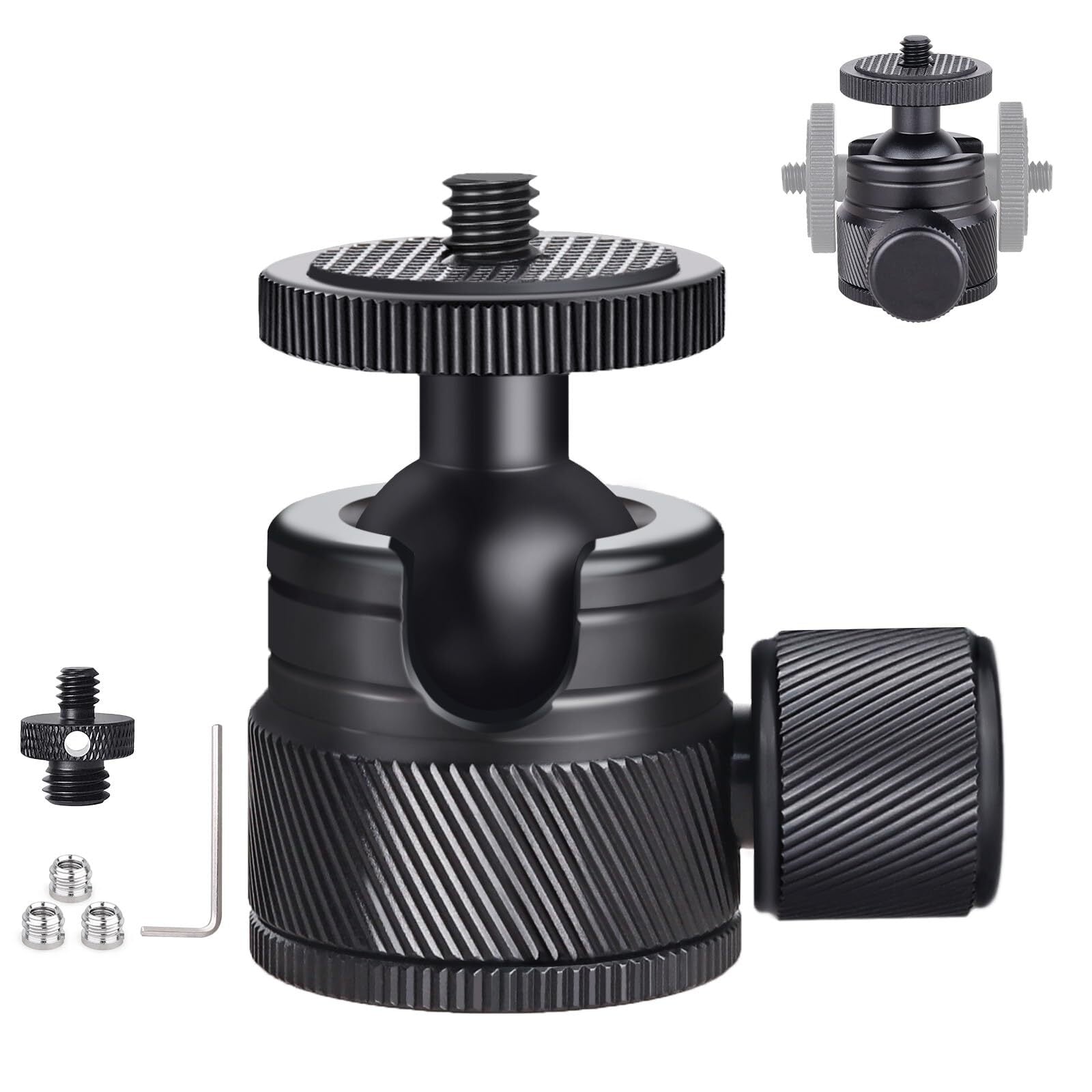 ARTCISE 20mmボール 低重心 雲台 1/4"オス-3/8"オスカメラネジダブルヘッドスタッド付き CNC加工 アルミ 360度回転 パノラマ ボールヘッド 自由雲台 最大耐荷重3キロ