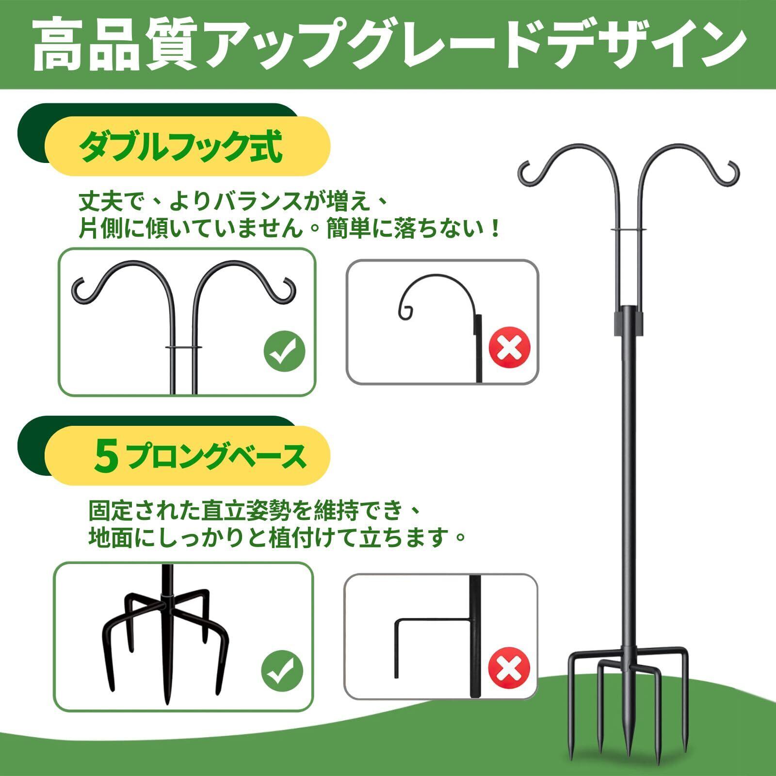 PIENSE ガーデンプランターフック プランターハンガー 屋外ハンギング ランタンスタンド バードフィーダーポール (193cm)