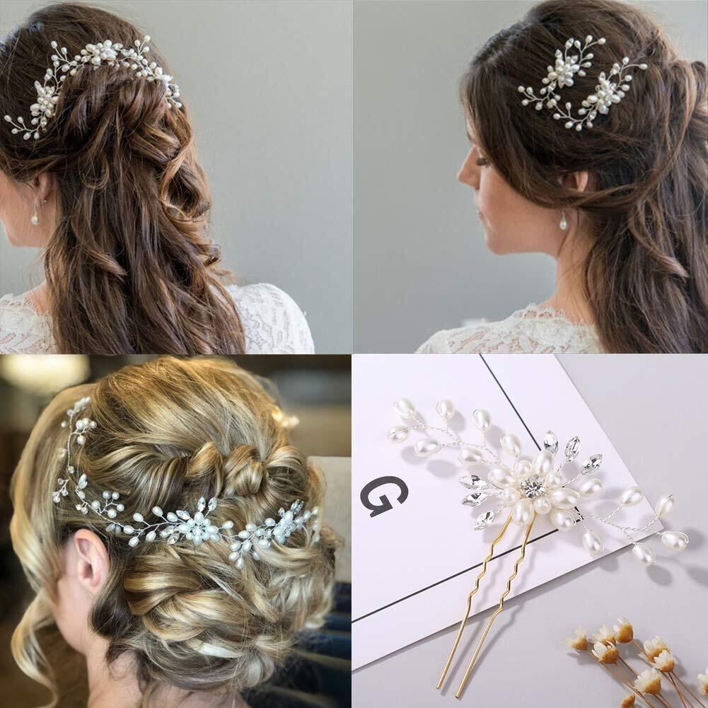 STL ヘッドドレス ウェディング 髪飾り 花嫁 カチューシャ ヘアピン パール ラインストーン ブライダルティアラ Uピン かんざし 髪留め ヘアクリップ ヘアアクセサリー 結婚式 披露宴 二次会 卒業式 入学式 パーティー ダンス 和装 撮影 (ヘアピン 3個セット)
