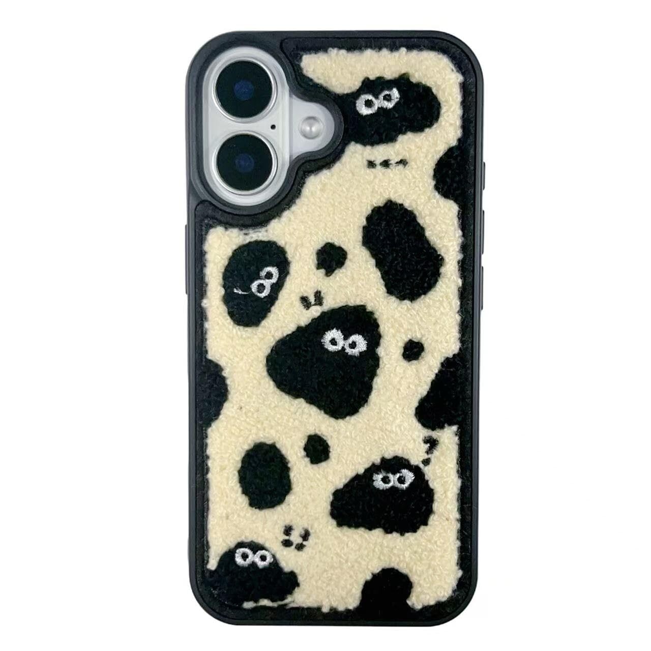 背面部分がモコモコ素材で秋冬にぴったり!モコモコ素材の内側はTPU製iphoneケースになりますので簡単に装着できます。もふもふの手触りが優しくて見るたびに癒されます。冬は牛柄素材がかわいい。商品写真はできる限り現品を再現するようにしておりますがご利用のモニター・環境により差異が生じます。予めご了承下さいませ。