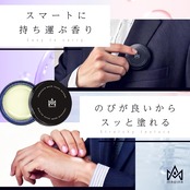【使いやすさにこだわった練り香水】指先で1〜2回軽く塗るだけで適量使用可能。コンパクトなサイズで持ち運びにも便利で、約2〜3ヶ月継続使用できる実用性も魅力。ビジネスからデート、合コンまで、様々なシーンで活躍するアイテムです。