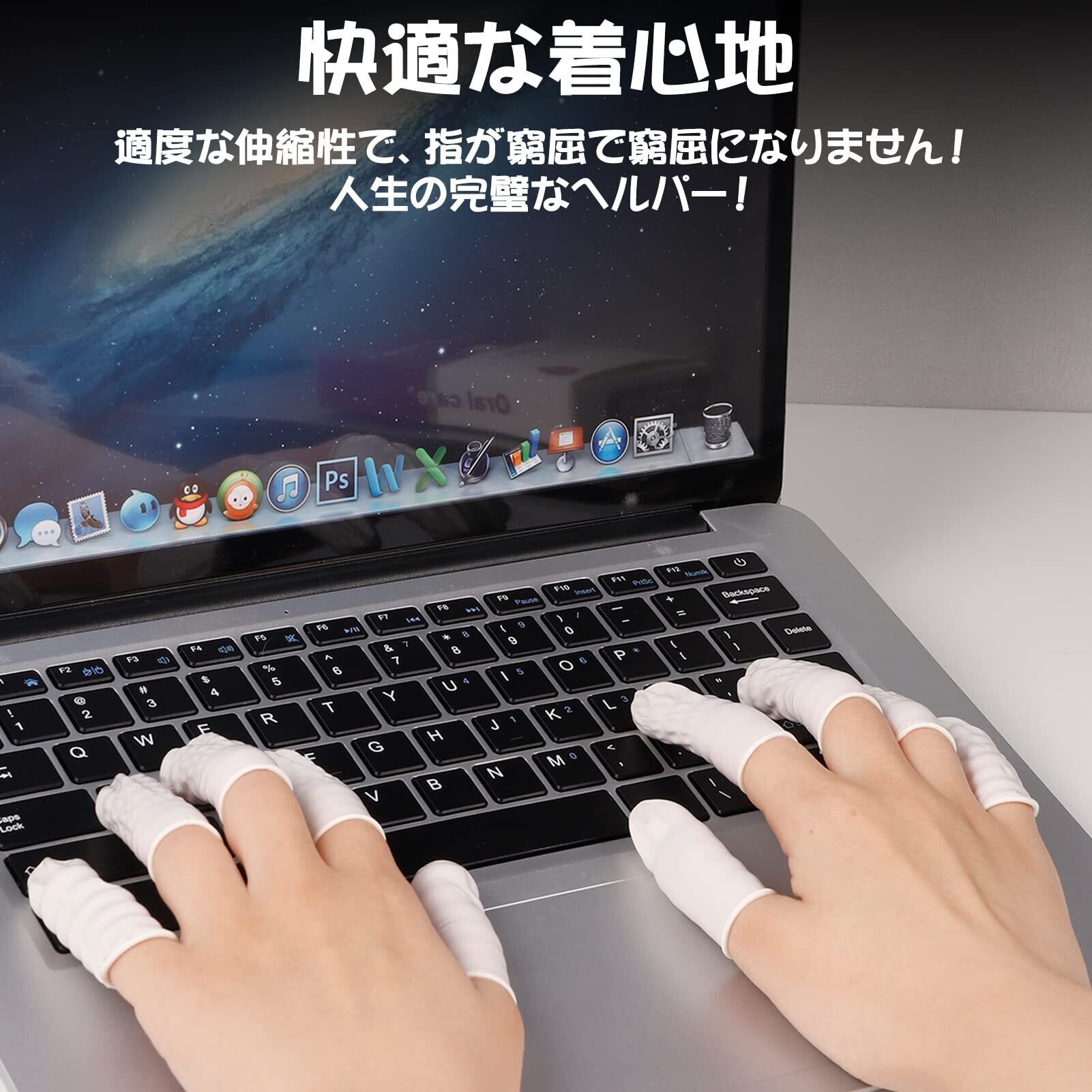 【指先保護】指サックはラテックス製で、柔らかく着やすいです。爪が傷まないように指先が太くなっています。縁が薄く指をきつく挟みにくく、長時間使っても挟み込み感がありません。
