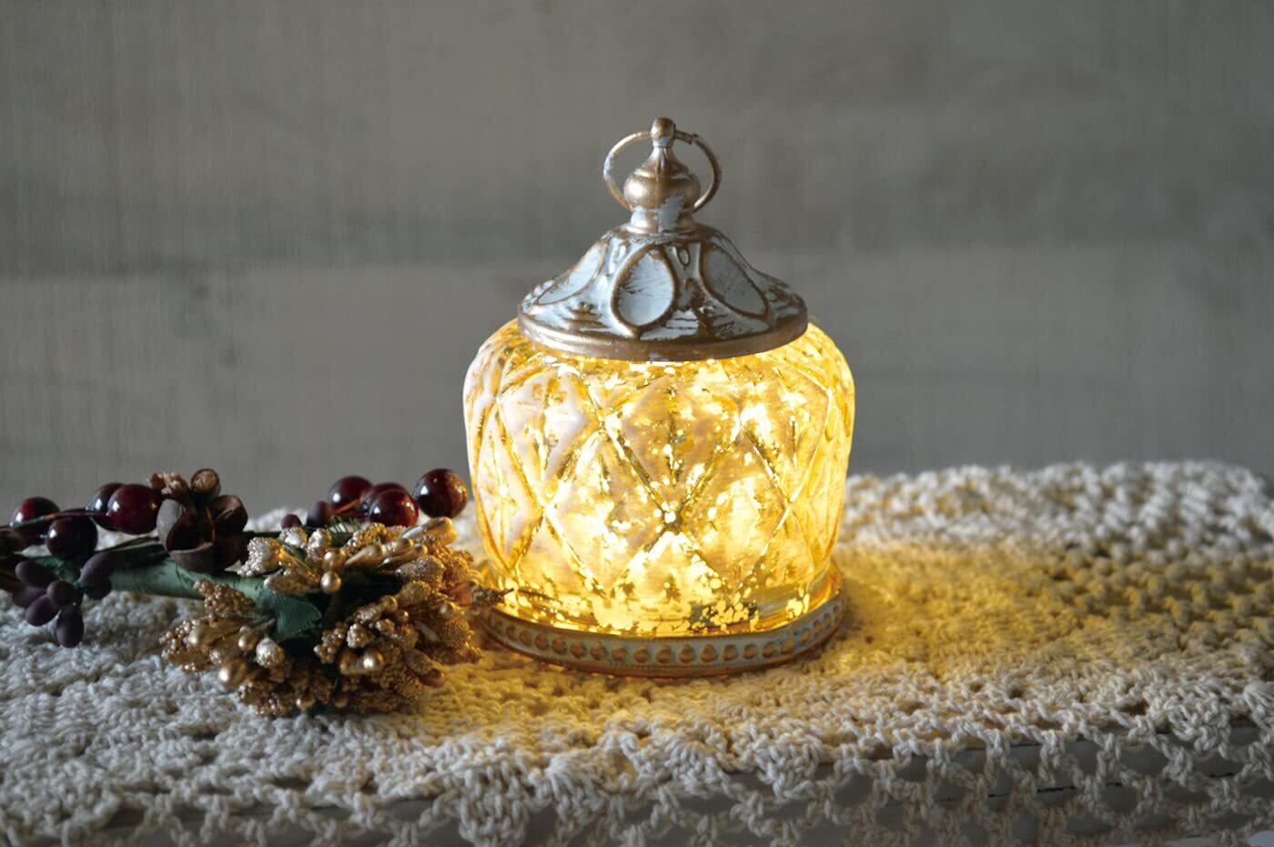 ビジュー LEDランタン アンティーク調 ガラス おしゃれ 淡い光 インテリア装飾 モティフ - 167167
