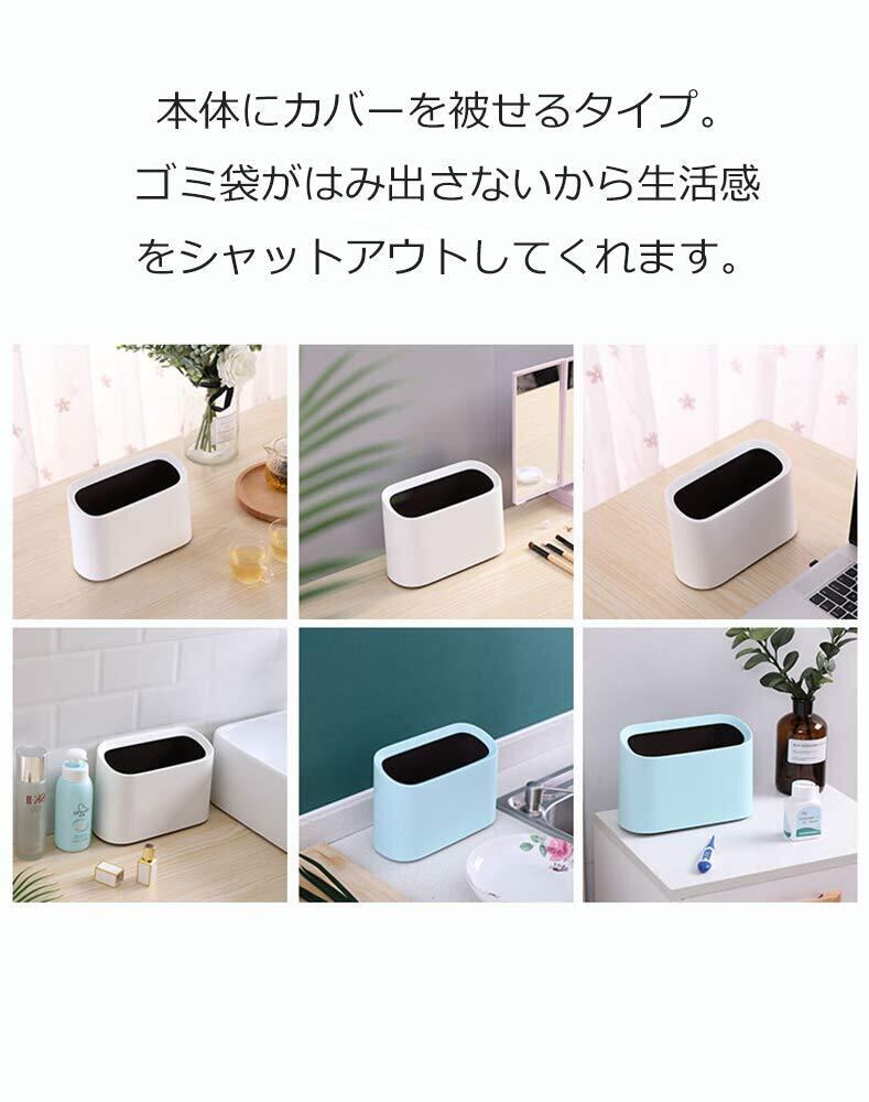 使い方はポリ袋をスッポリ入れてカバーを被せるだけ。袋が外に見えず、見た目も清潔なミニゴミ箱。
